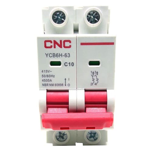 O Disjuntor Modelo Ycb6H-63 Bipolar Curva C 10A Cnc é ideal para sistemas que passam um grande fluxo de corrente. Com ele, você pode ligar e desligar todas as fases através de uma só alavanca, facilitando o controle e proteção do circuito.