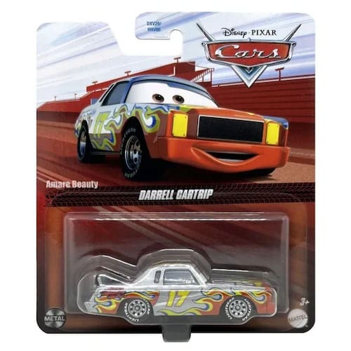 Recrie as corridas cheias de emoção de Radiator Springs com o veículo Darrell Cartrip, perfeito para brincar de empurrar carrinho, encenar cenas dos filmes ou exibir como destaque na coleção; ideal para crianças, fãs e colecionadores que querem mergulhar no universo de Carros da Disney e Pixar.