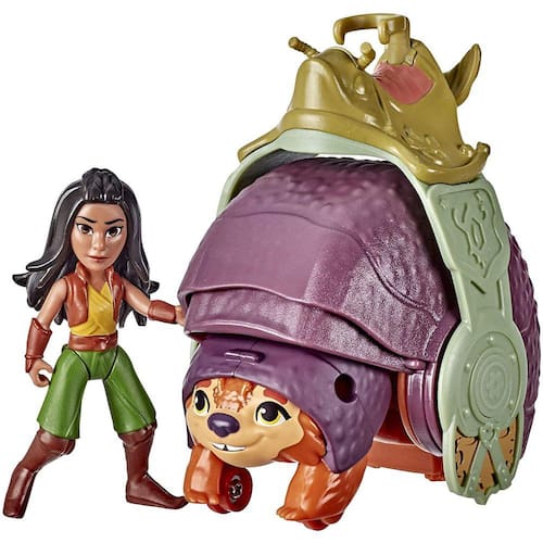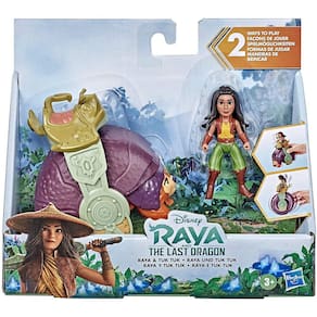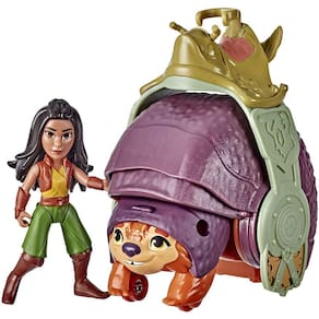 Em "Raya and the Last Dragon", da Disney, o fiel steed Tuk-Tuk de Raya é construído para velocidade e aventura. Há duas maneiras de brincar com o brinquedo Tuk Tuk e Raya. Tuk Tuk pode permanecer aberto e as crianças podem enrolá-lo com Raya nas costas, ou eles podem dobrar sua cabeça e fechar sua concha para que ele esteja todo escondido e pronto para rolar. As rodas debaixo dele fazem um passeio suave em superfícies duras e planas. Inspirada pela dupla dinâmica do filme, a boneca Raya é capaz de cortar nas costas de Tuk Tuk e ir dar uma volta em qualquer forma! O tamanho de Raya é incrível para mãos pequenas para levá-la em aventuras imaginárias. A boneca pode sentar ou ficar em pé e tem cabelos castanhos moldados. Ela está usando uma roupa de batalha moldada de calças verdes, camisa amarela, colete vermelho e botas.