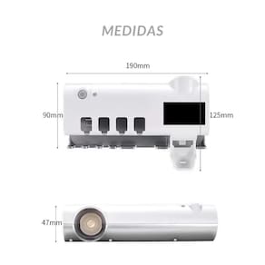 Produto inovador e revolucionário, nosso incrível esterilizador e dispensador de pastas 3 em 1, age com luzes ultravioletas nas suas escovas eliminando 99% de germes e bactérias, a forte luz fotocalisadora age diretamente no dna bacteriano eliminiando-o de vez. Permite guardar até 4 escovas dentais e possui um sistema de dispenser de pasta de dente, evitando assim o desperdício.