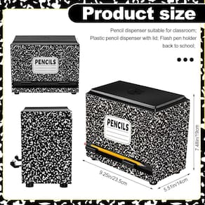 - Design compacto e colorido: incorporado em um tamanho pequeno e compacto de cerca de 9,3 x 7,5 x 4,5 polegadas/23,5 x 19 x 11,4 cm, este dispensador de lápis se encaixa perfeitamente em qualquer mesa ou espaço de armazenamento; a cor preto e branco brilhante adiciona um toque animado à sala de aula, chamando a atenção de todos enquanto promove um ambiente de aprendizagem divertido e vibrante
