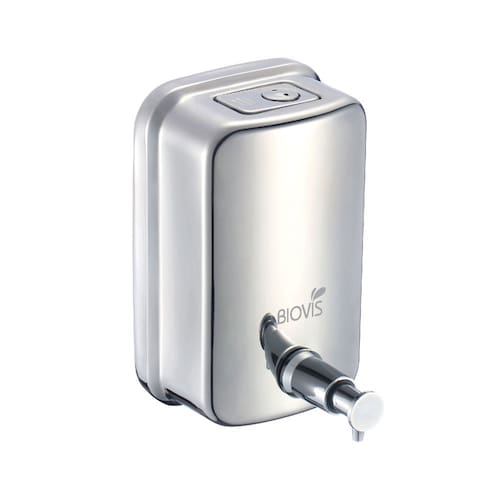 A Saboneteira Biovis Sabonete Líquido Em Inox 500ml é um dispensador manual de sabonete líquido ou álcool em gel, feito em Aço Inox Polido. Com capacidade de 500ml, suas dimensões aproximadas são 15 x 9,5 x 11 cm.