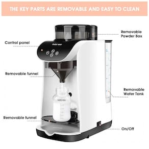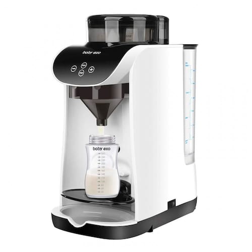 O Dispenser Automático Fórmula BabyEXO é um aparelho elétrico para preparo de mamadeiras com tecnologia de mistura inteligente de leite em pó e água em 10 segundos, sem formação de bolhas de ar. Compatível com diversas marcas de fórmulas e tamanhos de mamadeiras, permite ajuste completo de temperatura (30°C a 70°C) e volume de água (30 ml a 237 ml).