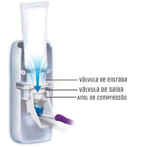 - para utiliza-lo basta pressionar a escova de dentes no dispenser, que o sistema de vácuo criado faz a pasta sair colocando-a diretamente sobre a escova, na medida certa. - evita desperdícios, economizando creme dental. - formato de bico universal, adaptável a todos os tipos de tubos de creme dental.