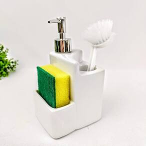 Uso: qualquer detalhe em um ambiente, é sinal de bom gosto e elegância, então, que tal usar este dispenser para detergente com lateral para bucha de louça e escovinha, produzido em cerâmica na cor branca Design moderno que ajuda a evitar desperdício do sabão e diminuir a poluição do meio ambiente além de manter sua cozinha sempre organizada