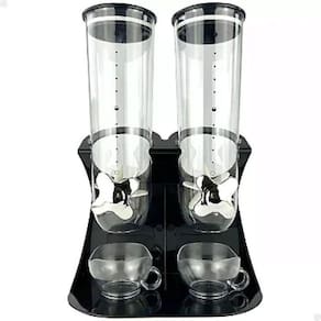 Dispenser Duplo de Cereais e Grãos com Controle de Porção Código 6559 Transforme sua cozinha com o Dispenser Duplo de Cereais e Grãos com Controle de Porção, ideal para armazenar cereais, grãos, sementes, e outros alimentos secos de maneira prática, organizada e higiênica. Com capacidade para dois tipos de alimentos, este dispenser é perfeito para quem busca conveniência e organização no dia a dia, mantendo os alimentos frescos por mais tempo. Principais Vantagens: Armazenamento Prático e Organizado: Com dois compartimentos separados, você pode armazenar diferentes tipos de cereais, grãos, sementes, nozes ou até mesmo doces e guloseimas, mantendo-os sempre ao alcance e facilitando o preparo de refeições rápidas e lanches. Controle de Porção Fácil: O sistema de dispensação permite o controle exato da quantidade de alimento, ajudando a evitar desperdícios e mantendo a alimentação equilibrada. Basta girar o botão para liberar a porção desejada diretamente na tigela. Frescor Prolongado: Os recipientes herméticos de acrílico mantêm os alimentos secos frescos e crocantes, protegendo contra umidade e insetos. Isso prolonga a vida útil dos alimentos, garantindo que estejam sempre prontos para o consumo. Fácil de Usar e Limpar: O design intuitivo permite fácil montagem, reabastecimento e limpeza do dispenser, facilitando a rotina diária. Os compartimentos são removíveis, permitindo uma limpeza rápida e prática. Economia de Espaço: Com um design compacto e elegante, este dispenser pode ser facilmente colocado em bancadas, prateleiras ou armários, economizando espaço na cozinha e proporcionando um ambiente mais organizado. Material Resistente e Durável: Feito de material acrílico e plástico ABS de alta qualidade, o dispenser é resistente a impactos, garantindo durabilidade e longa vida útil, mesmo com uso diário. Diferentes Opções de Uso: Café da Manhã Saudável: Ideal para armazenar cereais, aveia, granola, e outros itens do café da manhã. Perfeito para quem gosta de uma rotina matinal prática e saudável. Lanches Rápidos: Use o dispenser para armazenar nozes, amêndoas, castanhas, ou frutas secas, facilitando o acesso a lanches rápidos e nutritivos ao longo do dia. Grãos e Leguminosas: Excelente para armazenar arroz, feijão, lentilhas, quinoa, e outros grãos, mantendo-os organizados e prontos para uso nas suas receitas favoritas. Doces e Guloseimas: Pode ser utilizado para armazenar balas, chocolates, gomas e outros doces, facilitando o acesso e mantendo-os frescos. Cozinha Comercial ou Buffet: Perfeito para padarias, cafés, hotéis e buffets, onde a variedade e a apresentação dos alimentos são fundamentais. Facilita o serviço de self-service, permitindo que os clientes se sirvam de forma prática. do vendedor: 90 dias