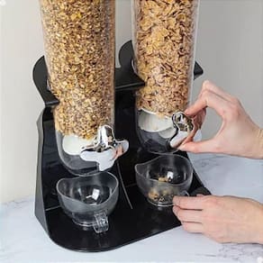 Dispenser De Cereais Duplo Acrilico 3 Litros Cromado E Preto