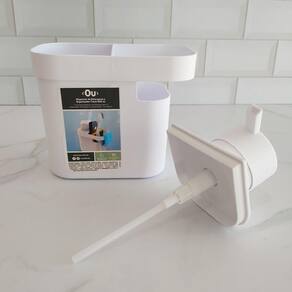 Dispenser De Detergente 650ml Organizador De Pia Porta Detergente E Esponja Branco OU.