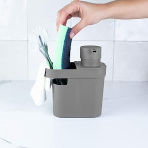 Detalhes do produto: - Além de contar com um recipiente porta detergente, o produto dispõe ainda de um compartimento que permite a organização de vários itens da pia, incluindo esponja, pano, e o que mais desejar; - O compartimento possui base com furos que facilitam o escoamento da água e borda para colocação do pano; - A válvula giratória pump, garante um toque mais confortável e funcional.