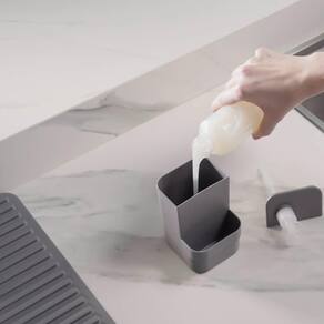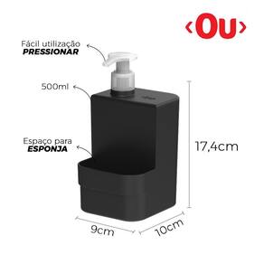 Dispenser de detergente e esponja pia bancada 500ml cores Cor: cinza Dispenser de detergente e esponja pia bancada 500ml cores pronta-entrega produto - acompanha disponível em escorre a água O produto possui furos na parte inferior para a vazão da água Cores disponíveis: azul, bege, branco, cinza, preto e vermelho Medidas do produto: Altura: 17,4cm Largura: 10cm Comprimento: 9cm Peso: 95g Seu lar com um toque de praticidade o dispenser para detergente e esponja trium compact 500 ml é perfeito para quem procura funcionalidade e beleza sobre a pia, pois permite a organização de forma versátil além de otimizar o espaço do ambiente. Com design minimalista, ele combina com todos os tipos de cozinhas ou varandas gourmet. O dispenser possui válvula dosadora que permite dosagem do detergente gerando economia, e compartimento para esponja que é fechado, ou seja, o produto vai da pia direto para a gaveta ou armário sem escorrer água. Fabricado em material resistente e flexível polipropileno , além do plástico ser texturizado impedindo riscos e facilitando a higienização. Praticidade, beleza e design são as características da linha trium pensadas para proporcionar qualidade na organização da sua pia. Obs: imagens meramente ilustrativas