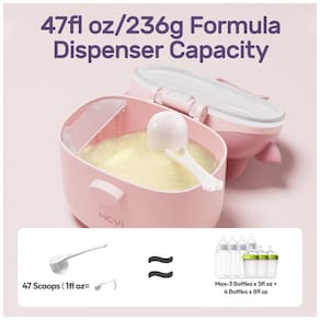 O Dispenser de Fórmula NCVI é um recipiente portátil para armazenamento de leite em pó infantil, lanches, doces ou frutas, com múltiplos compartimentos internos e colher dosadora separada, ideal para viagens, piqueniques ou uso externo com bebês. Possui chifres macios em TPE na tampa para estabilidade durante o preenchimento, com dimensões de 11 cm de comprimento, 8 cm de largura e 12,9 cm de altura.