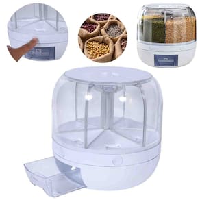 Material: Acrílico Compartimentos: 6 Recursos: Rotação 360°, Botão de Liberação Dispenser De Grãos Cereais Arroz Combo 6 Divisões Giratório