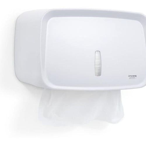 Dispenser de papel interfolha invoq compacto branco Feito com materiais resistentes, duráveis e com acabamento de alto padrão. O toalheiro invoq compacto torna-se peça-chave na composição de um ambiente moderno, clean e requintado.
