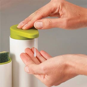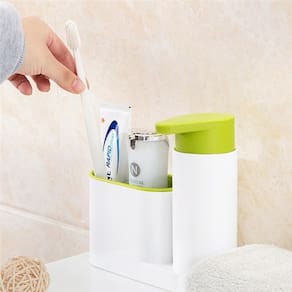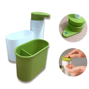 Dispenser para detergente ou sabonete líquido, excelente para organização da sua pia da cozinha ou banheiro Possui reservatório com capacidade de 250ml, e ainda um compartimento segmentado para armazenar esponja ou até mesmo escova de dente e pasta. Seu diferencial é a saída do detergente voltada para baixo, assim quando pressionar não respinga.