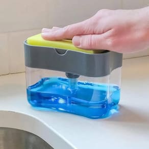 Dispenser Detergente 2 em 1 Esponja Limpeza Cozinha com Dosador O dispenser de detergente 2 em 1 é o que você precisa para facilitar e agilizar a sua rotina de limpeza na cozinha.