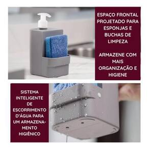 Com capacidade para 500ml de detergente líquido, o dispenser acompanha um suporte acoplado para a esponja, oferecendo tudo o que você precisa ao alcance das mãos. Ideal para otimizar o espaço da bancada, mantendo tudo no lugar certo com muito mais higiene e estilo.