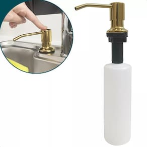 Aliando modernidade e elegância o Dosador Dourado é o produto ideal para compor seu ambiente, adiciona requinte a sua bancada com o seu design polido propiciando uma aparência inovadora e discreta com muita eficácia no seu uso. Sua instalação é fácil, ele é o Dispenser ideal para colocar ao lado da sua pia ou torneira, é preciso apenas preparar a superfície com um furo vazado e embutir seu dosador. Funcional, sua utilização é bem prática, o refil pode ser completo sempre que se esgotar, sem exigir muito trabalho, é necessário apenas retirar a parte superior do aplicador e preenche-lo com sua solução.