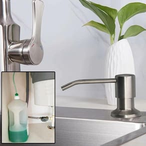 Deixe sua cozinha ainda mais bonita, com nosso dispenser bomba embutido que pode ser tanto em pias quanto em tanques. Ideal para manter a higiene e poupar espaço do ambiente ao mesmo tempo. Fácil de instalar, com um tubo de extensão para ser inserido diretamente na garrafa de sabão, de grande capacidade.
