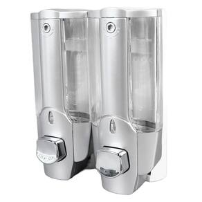 Dispenser Duplo com reservatório para Shampoo, Sabonete ou Álcool Gel possui manuseio pratico e fácil de ser instalado, garante eficiência e evita desperdício na saída do sabonete.