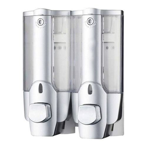 Dispenser Duplo com reservatório para Shampoo, Sabonete ou Álcool Gel possui manuseio pratico e fácil de ser instalado, garante eficiência e evita desperdício na saída do sabonete.