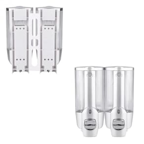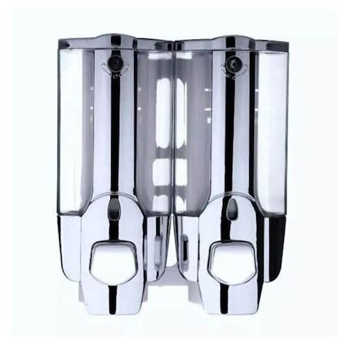 Dispenser Duplo com reservatório para Shampoo, Sabonete ou Álcool Gel possui manuseio pratico e fácil de ser instalado, garante eficiência e evita desperdício na saída do sabonete.