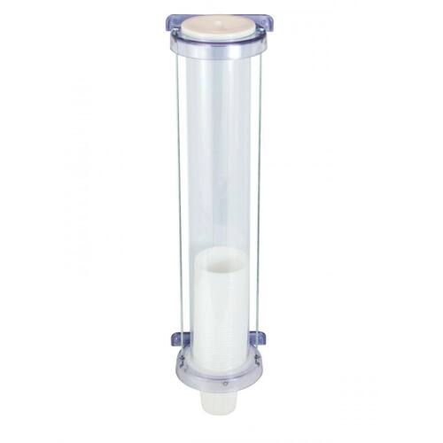 Dispenser de copos para água de 180/200mL. Tubo confeccionado em PVC semirrígido, base superior e inferior injetado em plástico ABS cristal. Possui garras escova em polietileno PE que ajustam a saída do copo. As varetas de fixação de uma base à outra são confeccionadas em aço carbono galvanizado. Mantém os copos organizados e protegidos contra sujidade. Acompanha uma tampa injetada em plástico ABS e kit com 4 parafuso e buchas para fixação na parede. Capacidade: 125 copos aproximadamente Diâmetro da boca: 7cm Medidas: 47 cm altura x 13 cm largura x 11,6 cm profundidade Marca: Não Informado Ean: 7898109850397
