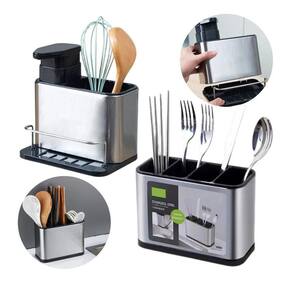Dispenser Inox Porta Detergente Sabão Liquido Esponja Bucha Dispenser Inox porta detergente Sabão Liquido Esponja Bucha Organizador Luxo Aço Inox 304 Dispenser Detergente Pia Cozinha Porta Esponja