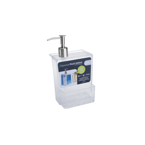 Na hora de manter a pia organizada, o Dispenser Multi, criado para a linha Sobre a Pia, cai como uma luva. O organizador de pia acomoda o detergente, a esponja e até mesmo o paninho para secar a pia, pois o produto tem uma alça especialmente para este fim, que o mantém sempre sequinho. Os furos internos evitam que a esponja fique em contato com a água e estrague. Sua pia vai ganhar um ar moderno e organizado. No compartimento do detergente, que comporta 600ml, o bico dosador também evita desperdícios.