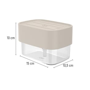 Dispenser Para Detergente 2 Em 1 Porta Esponja Trium Ou Cor: Bege O dispenser de detergente 2 em 1 é o que você precisa para facilitar e agilizar a sua rotina de limpeza na cozinha. Produzido em polipropileno resistente, o dispenser é simples de ser utilizado. Adequado para cozinhas domiciliares, restaurantes, hotéis, ou qualquer ambiente que precise de mais praticidade na hora de higienizar a cozinha. O produto evita o desperdício de detergente, pois possui dosador que funciona por pressão, e mantém a esponja seca para futuras utilizações.