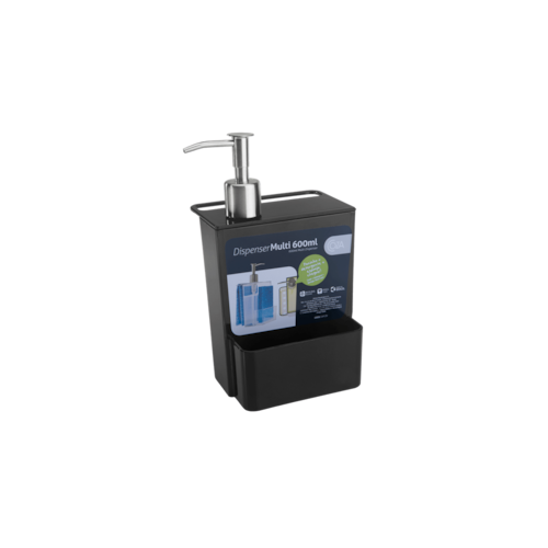 Na hora de manter a pia organizada, o Dispenser Multi, criado para a linha Sobre a Pia, cai como uma luva. O organizador de pia acomoda o detergente, a esponja e até mesmo o paninho para secar a pia, pois o produto tem uma alça especialmente para este fim, que o mantém sempre sequinho. Os furos internos evitam que a esponja fique em contato com a água e estrague. Sua pia vai ganhar um ar moderno e organizado. No compartimento do detergente, que comporta 600ml, o bico dosador também evita desperdícios.