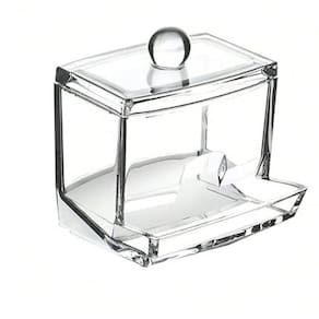 Dispenser Para Hastes de Algodão com Tampa Organize com estilo: Porta cotonete em acrílico transparente Descubra praticidade, design moderno e facilidade de uso com este porta cotonete transparente. Perfeito para manter seus itens de higiene sempre visíveis, limpos e ao alcance das mãos.