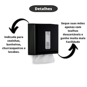 O Dispenser para Papel Toalha Nobre é indicado para cozinhas,banheiros, churrasqueiras e lavabos. Pesquisas comprovam quepanos de prato acumulam e espalham milhares de bactérias parapanelas, pratos, copos, talheres e demais utensílios domésticos emfunção do seu mau uso na secagem das mãos. Seque suas mãosapenas com toalhas descartáveis e ganhe muito mais facilidade no usoe instalação. Perfeito para diversos ambientes. Cor preto.Contém: Dispenser, 4 parafusos, 4 buchas.As informações desta ficha técnica representam os dados atuais e refletem com exatidão o nosso melhor conhecimento para o manuseioapropriado deste produto de acordo com as especificações constantes no rótulo/embalagem. Quaisquer outros usos do produto que nãoos recomendados, serão de responsabilidade do usuário. Todos os direitos reservados: Goedert Ltda. 79.846.465/0001-18dimensõespeso líquido produto: 620gPeso bruto produto: 698gMedida produto CxAxL : 24,4cm x 27,9cm x 13,3cmCOMPOSIÇÃO: Polipropileno PP , poliestireno PS INSTALAÇÃO: Pressione o botão para abrir. Abra com cuidado,puxando a parte frontal para a frente e para baixo. Fixe o dispensadorna parede utilizando os parafusos que o acompanham. Abasteça compapel interfolhas, feche o dispensador e prontoPRECAUÇÕES: Na instalação, é importante verificar a existência deencanamentos no local da parede em que seu dispenser seráinstalado. Não utilize água sanitária ou soluções cloradas nahigienização do produto. Para limpeza do dispenser, utilize pano úmidoe detergente neutro. Não utilizar materiais abrasivos. Marca: Não Informado