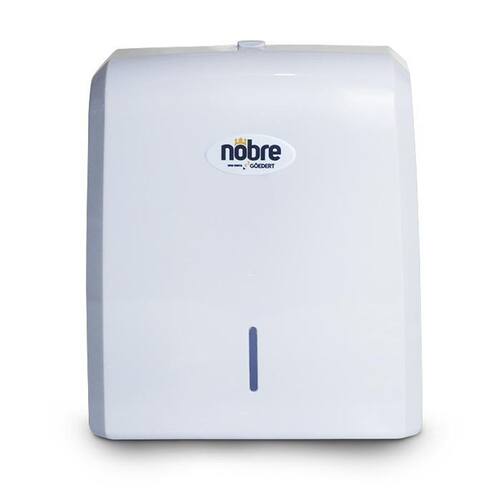 Dispenser Para Papel Toalha Nobre New Classic - Branco/Cinza Para papéis de duas ou três dobras. Botão para abertura manual. Visor para acompanhamento do nível do papel. Medidas: 25 x 30,5 x 11,5 cm Cor: Branco com Cinza Ean: 7899682766563