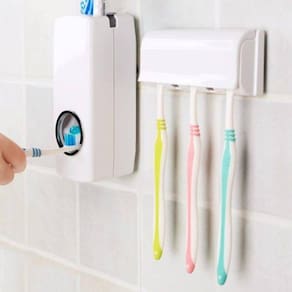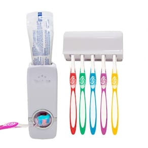 Dispenser Automático para Pasta de Dente e Suporte para Escovas de dente com 5 lugares, Muito prático, basta pressionar o botão com a própria escova de dente para o aparelho automaticamente liberar uma quantidade ideal de creme dental, Não precisa de pilhas, pois funciona por pressão, garantindo o uso total da sua pasta, sem desperdícios. Acompanha adesivo para parte de trás para você grudá-los em vidro, cerâmica ou mesmo na parede. Só não esqueça de limpar a superfície antes para garantir uma ótima aderência. Informações do Produto: - Material de fabricação plástico super resistente - Garantia do Fornecedor Contra defeitos de fabricação 3 meses - Dimensões aproximadas em cm: dispenser 15 x 6 / suporte 11 x 5 - Não utiliza pilhas - Produto de ótima qualidade e durabilidade - Os acessórios utilizados na produção das fotos não acompanham o produto Tamanho Aproximado Da Caixa: A:7XL:13XC:19,5CM Peso Aproximado: 210G Cor: Branco Composição: Plástico Itens Inclusos: 1 Dispenser 1 Porta escovas Ean: 7897186082844