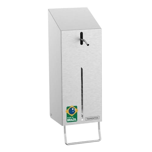 Dispenser Para Sabão E álcool Gel Tramontina Inox 500 Ml Dispenser para Sabão e Álcool Gel Tramontina em Aço Inox com Acabamento Scotch Brite e Recipiente em PET 500 ml Manter a higiene e a limpeza das mãos é essencial, e contar com itens que te ajudem neste objetivo é ainda melhor. O dispenser de sabão líquido e álcool gel, fabricado em aço inoxidável com acabamento escovado de 500 ml funciona através do acionamento manual, além de possuir um design exclusivo que o permite se adaptar aos mais variados tipos de ambientes.