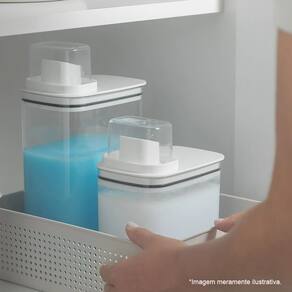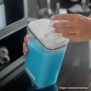 O Dispenser Flow 2,3L é a solução ideal para armazenar uma variedade de produtos de limpeza, como amaciante, sabão em pó e desinfetante. Sua transparência facilita a gestão visual da lavanderia, proporcionando tranquilidade durante as tarefas domésticas.