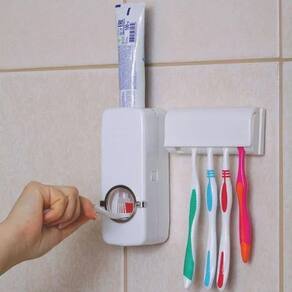 O Dispenser para Pasta de Dente com Porta Escova Dental é um acessório prático e funcional para o banheiro, mantendo a pasta de dente organizada e facilitando sua aplicação. Com um design compacto e moderno, este conjunto oferece um dispenser automático de pasta de dente e espaço para armazenar até cinco escovas dentais, mantendo tudo limpo e acessível.
