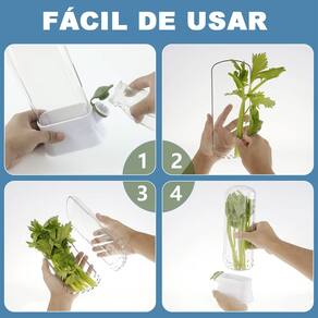 O recipiente é fácil de utilizar, basta despejar água filtrada ao dispenser de ervas através da tampa removível e verifique se as hastes estão submersas para uma eficácia máxima. Esse recipente pode manter as ervas frescas por até 3 semanas, permitindo que você coma vegetais frescos a qualquer momento. É ideal que troca da água do recipiente a cada 3-5 dias.