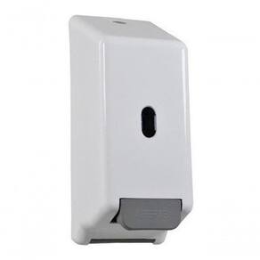 Dispenser Saboneteira Com Reservatório - Sabonete SABONETEIRA CLÁSSICA ABS COM RESERVATÓRIO Saboneteira com reservatório para 900mL. Injetada em plástico ABS branco, visor cristal transparente, o que permite o controle da substituição do sabonete, fundo e botão na cor cinza. O reservatório permite a colocação de sabonete líquido com capacidade de 900mL, sendo necessário realizar a substituição do bico dosador (mangueirinha) a cada período de 3 (três) meses, ou antes, se ocorrer o ressecamento ou vazamento dele. É possível, ainda, retirar o reservatório e utilizar apenas o refil (bag) de 800mL de sabonete líquido ou refil álcool gel. Acompanha chave plástica e kit contendo buchas e parafusos para fixação na parede. Disponível na cor: Branco/Cinza Medidas: 290mm (altura) x 123mm (largura) x 110mm (profundidade). Ean: 7898714182852