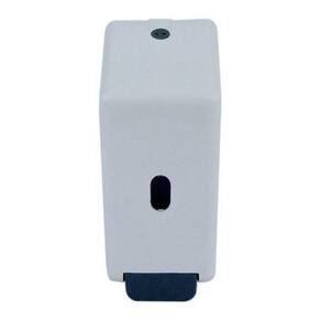 Injetada em plástico abs branco, visor cristal transparente, o que permite o controle da substituição do sabonete, fundo e botão na cor cinza.