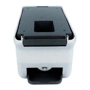 Injetada em plástico abs branco, visor cristal transparente, o que permite o controle da substituição do sabonete, fundo e botão na cor cinza.