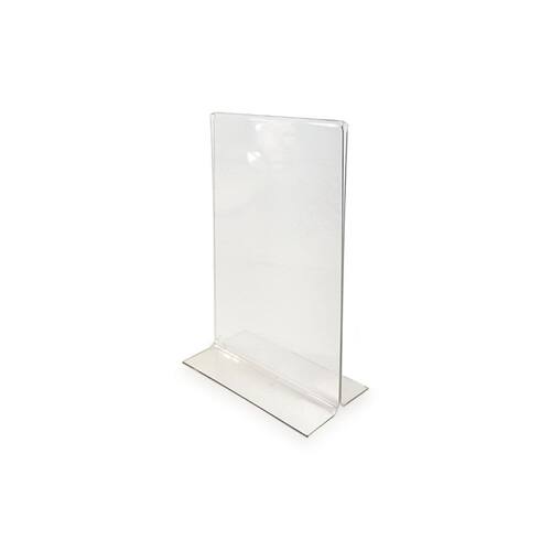 Cada display é fabricado em PETG cristal, um material transparente que permite uma excelente visualização do conteúdo. O modelo T Invertido garante uma orientação horizontal, garantindo ainda mais destaque para os folhetos e flyers.
