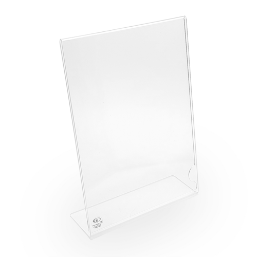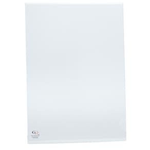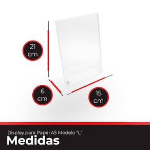 FICHA TÉCNICA Modelo: Display para Papel A5 Modelo "L" Posição Retrato Material: Acrílico Cristal 2mm Dimensões: Largura: 15cm, Altura: 21cm Peso: 0,270Kg