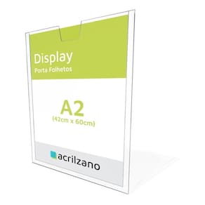 Display de parede acrílico a2 porta folha 1 unidade Caracteristicas do produto: Suporte de papel porta folder e folheto a6 em acrílico 100% virgem é o produto ideal para exposição de cartazes, anúncios, comunicados, certificados, alvarás, licenças, suportes para notificações, ofertas e qualquer tipo de comunicação entre você e seus clientes ou funcionários. Benefícios: - peça fabricada com corte a laser.- não amarela com o tempo.- excelente resistência e durabilidade.- fita dupla face nas bordas (laterais) para fixação.- pode ser usado e fixado no formato vertical. Modo de uso: Use pano úmido na superfície onde o display será colocado, tire a proteção verde da fita dupla face, cole o produto na superfície. Especificações técnicas: - modelo: display em acrílico de parede com fita dupla face vhb- tamanho: porta folha a2- material: acrílico 2mm- uso: vertical ou horizontal- largura: 42 centímetros altura: 60 centímetros- garantia: os produtos da acrilzano possuem garantia contra vícios (defeitos) de fabricação. Atenção: - limpe com álcool em gel em pouca quantidade para ajudar na higienização e desinfectação do produto, utilize uma paninho de algodão ou uma paninha macio.Ajuda a não propagar o contágio de doenças transmissíveis pela saliva e fluidos nasais. - não é recomendado uso de escovas, esponjas de aço ou fricção. Não utilize elementos corrosivos na limpeza do material. Sobre nós: A acrilzano, há 26 anos no mercado e referência de fabricação de produtos de acrílico, prioriza transmitir a individualidade em suas peças acrílicas aliada a altos critérios de qualidade. Marca: Acrilzano Az Loja