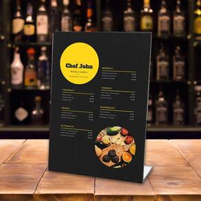 Modo de uso: mesa, balcão, vitrines, estantes ou outros locais que desejar comunicar.
