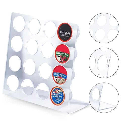 O expositor organizador de cápsulas de café foi projetado para organizar, decorar e facilitar seu consumo. Utilizado em ambientes como cozinha, bares, restaurantes, studios, escritórios e entre outros, com seu design leve pode ser utilizado em eventos também. Deixa a cápsula de forma mais acessível. Estrutura elegante e moderna, projetada para chamar a atenção dos clientes, agregar a decoração e complementar a atmosfera do local. Feito de acrílico transparente, muito resistente, imitando o vidro e o cristal, agrega a qualquer ambiente. Equipado com 16 espaços com medidas de 4,5 por 4,5 centímetros para armazenar suas cápsulas favoritas.