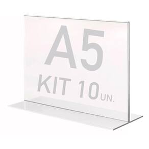 Kit 10 Displays expositor T A5 Horizontal transparente porta papel, podendo usar frente e verso (folha A5). .