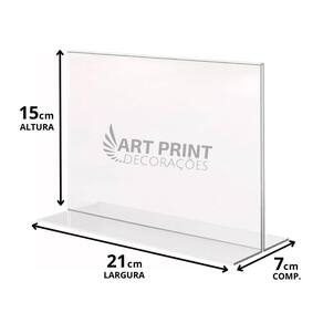 Modo de uso: mesa, balcão, vitrines, estantes ou outros locais que desejar comunicar.