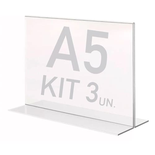Kit 3 Displays expositor T A5 Horizontal transparente porta papel, podendo usar frente e verso (folha A5). .