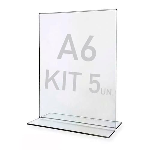 Kit 5 Displays expositor T A6 transparente porta papel, podendo usar frente e verso (folha A6). .